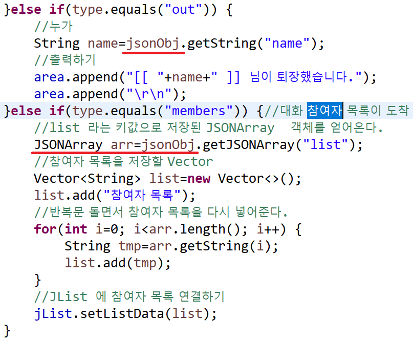 }else if(type.equals("members")) {// 대화 참여자 목록이 도착