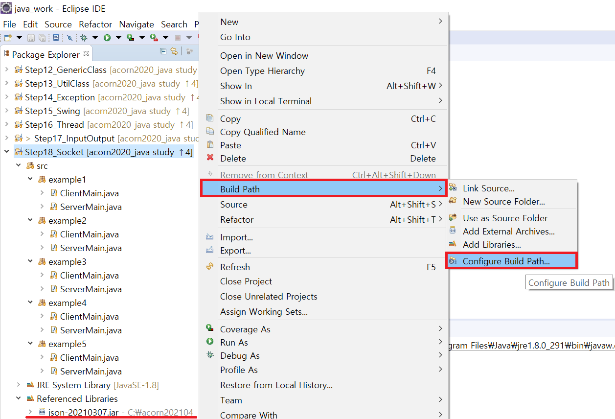 프로젝트에 우클릭을 해서 Build Path > Configure Build Path 를 따라가면 다음의 창을 볼 수 있을 것이다.