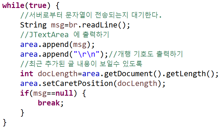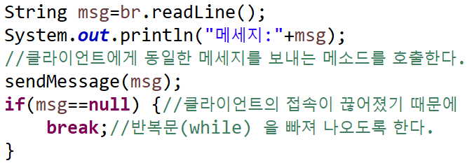 if(msg==null) {// 클라이언트의 접속이 끊어졌기 때문에