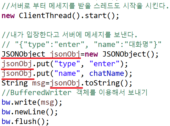 Thread가 마무리됐을 때도 JSON Object를 이용해서 다른 client에게 해당 thread가 종료되었음을 알리기 위한 부분이다.