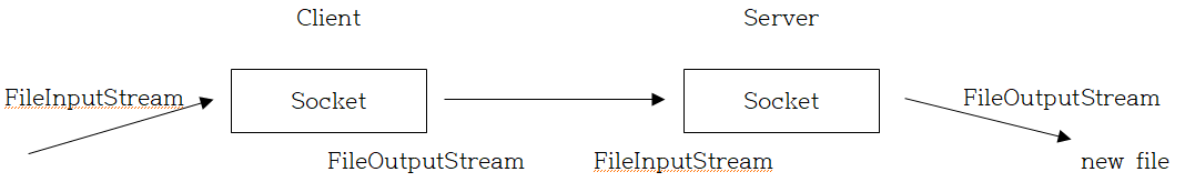 이를 보고 파일을 전송하는 것을 생각해보자. Client 측에서 FileInputStream 객체를 통해 socket으로 읽어들인 후, FileOutputStream 객체를 통해 server 측의 socket으로 내보낸다. Server 측에서는 FileInputStream 객체를 통해 socket으로 읽어들인 후, FileOutputStream 객체를 이용해서 파일로 server에 만들어낸다고 할 수 있다. 이렇듯 java에서는 객체를잘 활용해야 한다.