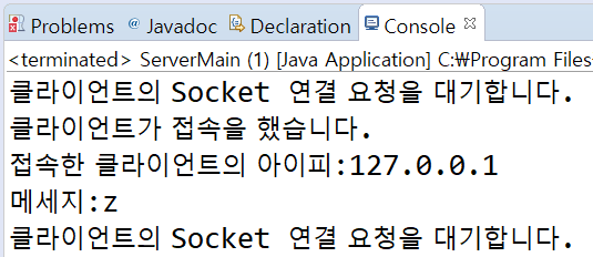 System.out.println("클라이언트의 Socket 연결 요청을 대기합니다.");