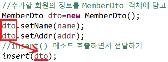 // MemberDao 객체의 메소드를 이용해서 DB 에 저장하기