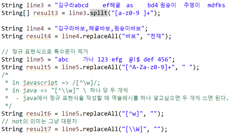 * - java에서 정규 표현식을 작성할 때 역슬레시를 하나 넣고싶으면 두 개씩 쓰면 된다.