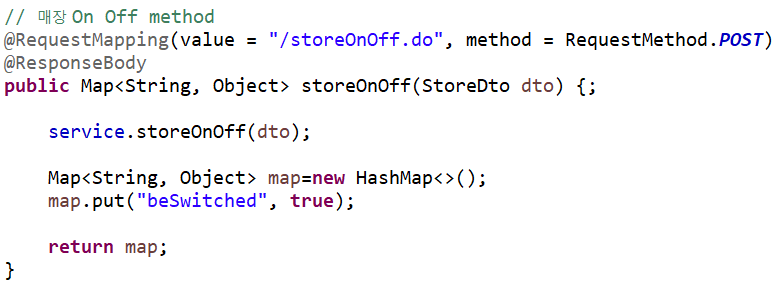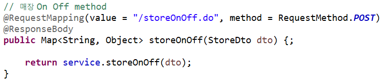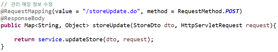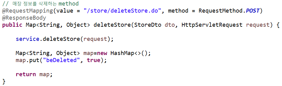 매장 정보를 삭제하는 controller 의 method이다. 역시 Map 객체를 service 단에서 다루고 싶다.