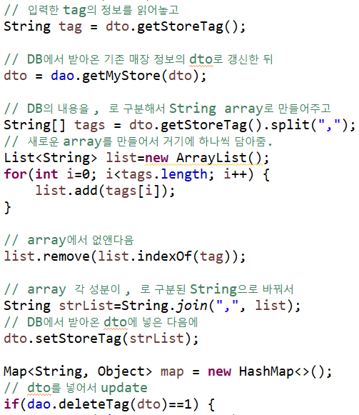 이전 매장 정보 관리 페이지1 에서 이어서 작업하려고 한다. 살펴보고 싶은 내용은 매장에 대한 tag 관련 logic과 매장 정보를 삭제하는 logic에 대한 것이다.
