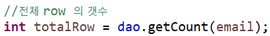 두 번째는 마지막 OrderService의 getList에서 굳이 필요없는 dao method를 사용하고 있던 점이다. 이미 email data로 주문 내역을 List로 받은 상태에서, 다시 query 문을 통해 조회하여 주문 내역의 수를 받아올 필요는 없다. 때문에 List의 method를 사용하는 것으로 수정하면서 동시에 해당 dao method를 지워주고 Mapper.xml에서 query 문 또한 지워주었다. 해당 내용들은 다른 곳에서 전혀 사용되지 않는다.