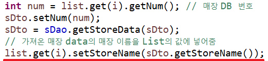 이렇게 주문 table에서 storeName에 대한 column을 지워주었으므로, 기존에 DB로부터 조회했던 storeName의 값을 setter method로 따로 넣어주어야 마이 페이지에서 조회할 수 있게 된다.