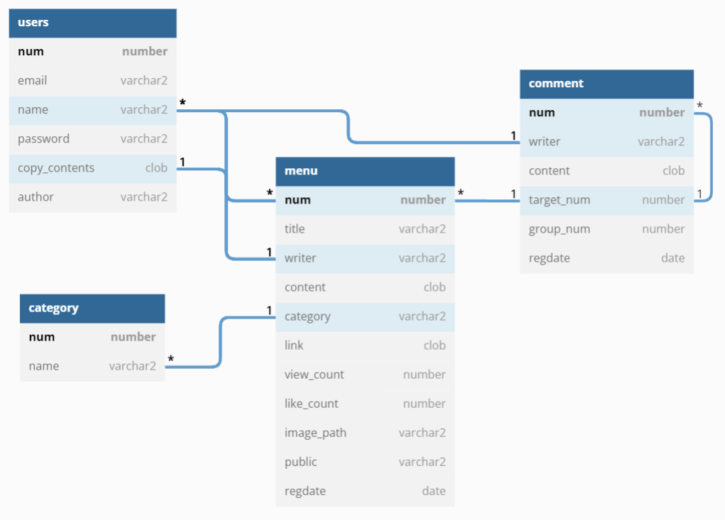 - target_num : 댓글의 target. 게시글의 num을 target으로 한다.