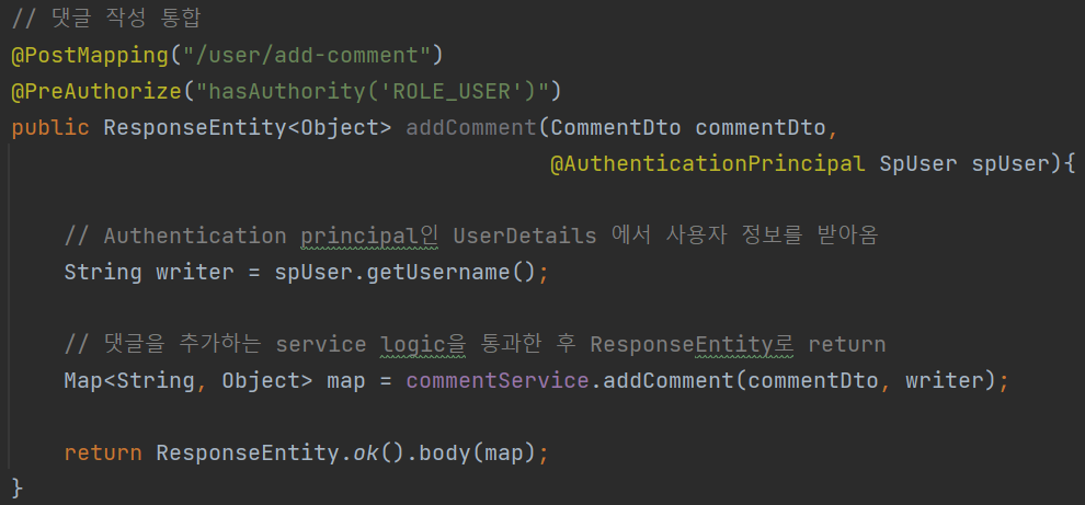 public Map<String, Object> addComment(CommentDto commentDto, String writer) {