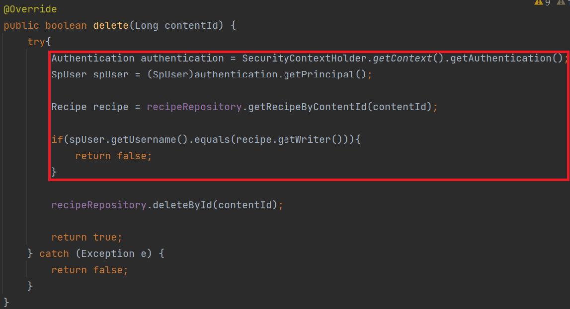 beMatched = spUser.getUsername().equals(recipe.getWriter());