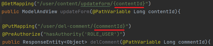 // URI의 path variable을 Map으로 불러와서 그 중에 contentId 의 value를 가져옴