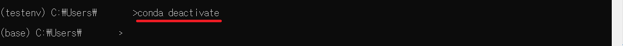 deactivate 명령어로 현재 활성화한 가상환경을 비활성화 함.