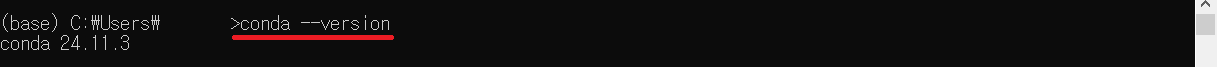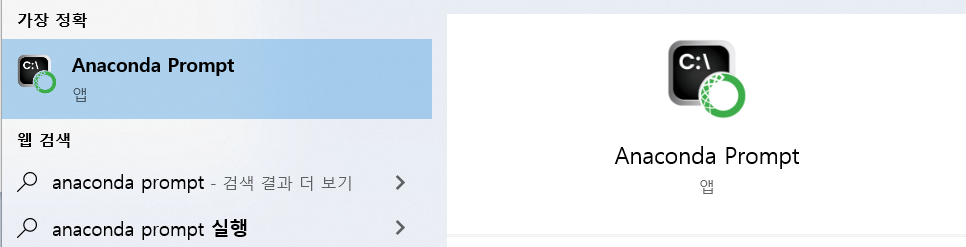 설치 완료 후 Anaconda Prompt를 실행하여 위와 같이 버전을 확인했을 때, 정보가 출력된다면 정상적으로 설치된 것.