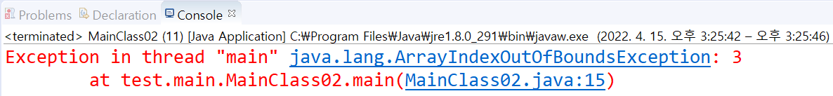 만약에 없는 방 번호를 참조하게 되면 위와 같이 console 창에서 exception message를 볼 수 있다. 해당 exception의 이름에서도 알 수 있듯, array의 index가 bound된 것보다 벗어났을 경우임을 유추할 수 있다.